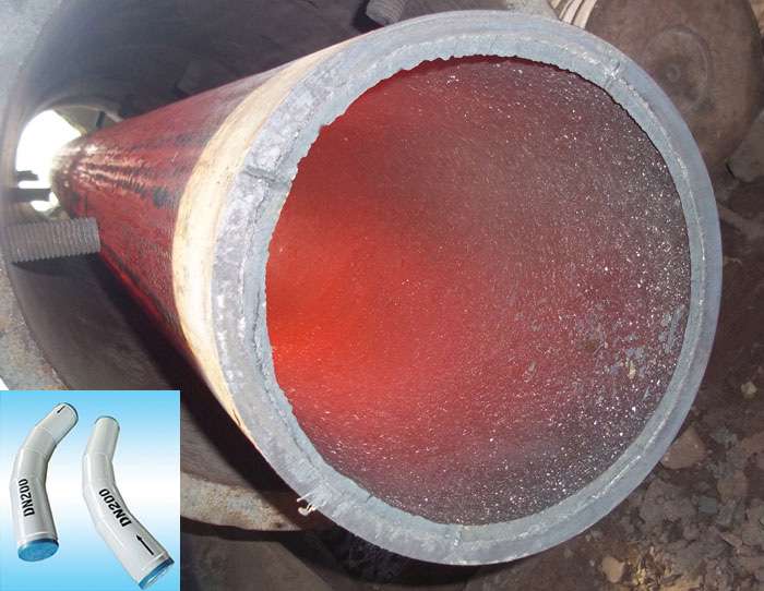 自蔓燃陶瓷復合鋼管是采用自蔓燃高溫離心合成法制造。該管從內到外分別由剛玉陶瓷、過渡層、鋼三層組成,陶瓷層是在2200℃以上的高溫形成的致密剛玉,通過過渡層與鋼管形成牢固的結合。